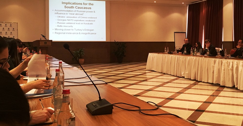 The briefing focused on three main areas: (1) an analysis of the likely course of U.S. policy in the South Caucasus region, including a possible shift in policy over the Nagorno-Karabakh conflict; (2) an assessment of the impact of the incoming Trump Administration on U.S. relations with Russia and the broader Eurasian region, including its likely stance on U.S. support for Ukraine and Georgia, as well as on the issue of democracy promotion; and (3) a wider assessment of possible shifts in U.S. foreign policy regarding Turkey, Iran and the Middle East, but also focusing on the outlook for Trump policies toward NATO, the European Union and Euro-Atlantic security.